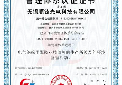 無錫順鉉光電環(huán)境管理體系認(rèn)證證書(E)